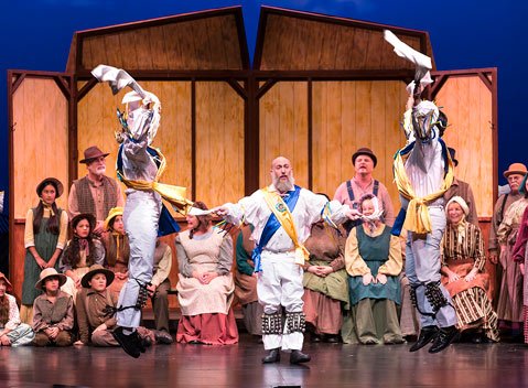 But here in Santa Barbara revelry saturated the weekend prior to Christmas, thanks to Santa Barbara Revels. At seven years, the local tradition is, by all appearances, soundly rooted and flourishing. Santa Barbara Revels, founded by artistic director Susan Keller, is one in a network of ten companies nationwide that marks significant seasonal changes—especially the winter solstice—with performing arts celebrations of old world traditions. At one level, Revels is a theatrical spectacle with sets, costumes, drama, comedy, song, music and dance. Yet the spirit of the enterprise is community, and that cohesion was in abundant evidence this weekend: performing arts professionals melded with a spectrum of amateurs, volunteers and ultimately the audience. Patrons sang out enthusiastically on Saturday during sing-a-longs, and many brave souls even left their seats to join “The Lord of the Dance,” parading up the aisles hand-in-hand and out to the patio.